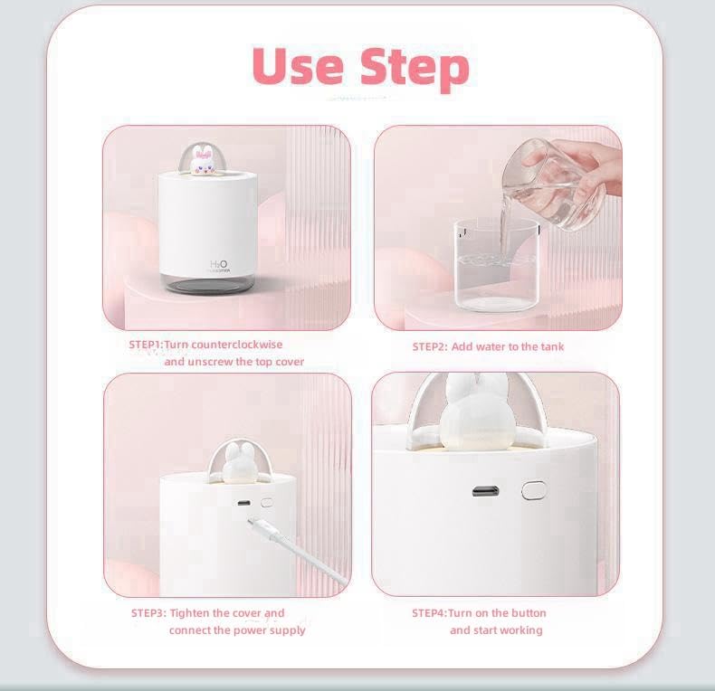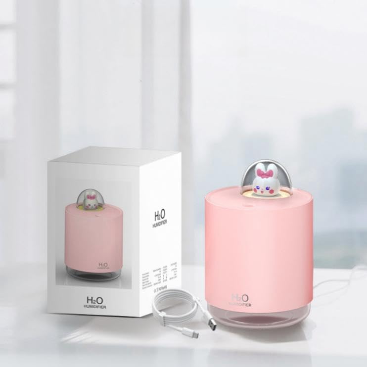 Mini Υγραντήρας που ατμίζει με φωτιζόμενο κουνελάκι στο πάνω μέρος. 300ml. Aromatherapy