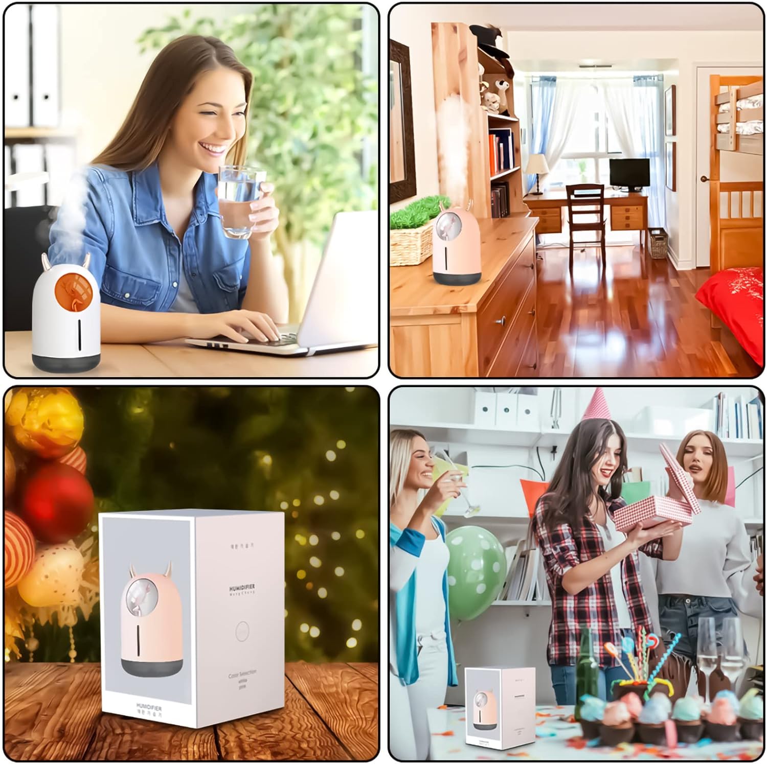 Mini Humidifier Air Diffuser Aroma Oil Diffuser. Δεξαμενή νερού 300 ml. με πολύχρωμο νυχτερινό φως. Δύο τρόποι ψεκασμού είναι ρυθμιζόμενοι, μία φορά πιέστε για συνεχή ψεκασμό και δύο φορές για διαλειμματικό ψεκασμό. Τροφοδοτείται 5V 1A micro USB, συμβατή με οποιαδήποτε συσκευή με θύρα USB όπως φορητό υπολογιστή, επιτραπέζιο υπολογιστή, power bank, πρίζα ή πρίζα. Λειτουργία αυτόματης απενεργοποίησης, Μικρό και ελαφρύ, ιδανικό για υπνοδωμάτιο στο σπίτι, γραφείο σε 20-30 τετραγωνικά μέτρα ή φορητό για αυτοκίνητο, ταξίδια.