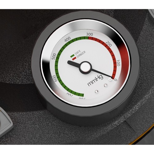 Διαθέτει μανόμετρο που μετρά έως 760 mmHg. Όταν ο δείκτης βρίσκεται στην πράσινη ζώνη, η δύναμη αναρρόφησης είναι στο μέγιστο, διασφαλίζοντας ασφαλή χρήση.