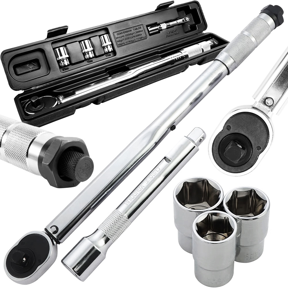 Αυτό το πρακτικό σετ περιλαμβάνει ένα δυναμόκλειδο 1/2″ με εύρος ροπής από 40 έως 210 Nm και τρία καρυδάκια σε μετρικές διαστάσεις 17 mm, 19 mm και 21 mm. Αποτελεί μια εξαιρετική λύση για επαγγελματική χρήση και αυτοσυντήρηση, στον χώρο του συνεργείου ή ακόμη και στο σπίτι.