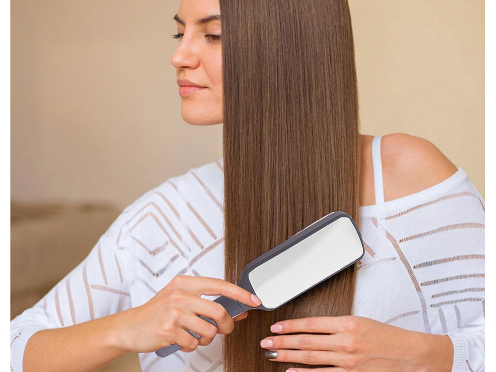Αυτοκαθαριζόμενη Αντιστατική Βούρτσα Μαλλιών για Χτένισμα & Ξεμπέρδεμα. Σκούρο Γκρι. Άνεση & Ευκολία. Διαστάσεις: 24 x 6cm