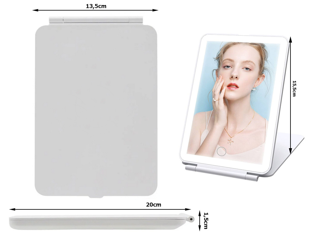 Φωτιζόμενος Καθρέφτης Μακιγιάζ LED. Αναδιπλούμενος & Φορητός. Διαγώνιος 19 cm. Θερμό, ψυχρό, μικτό φως.