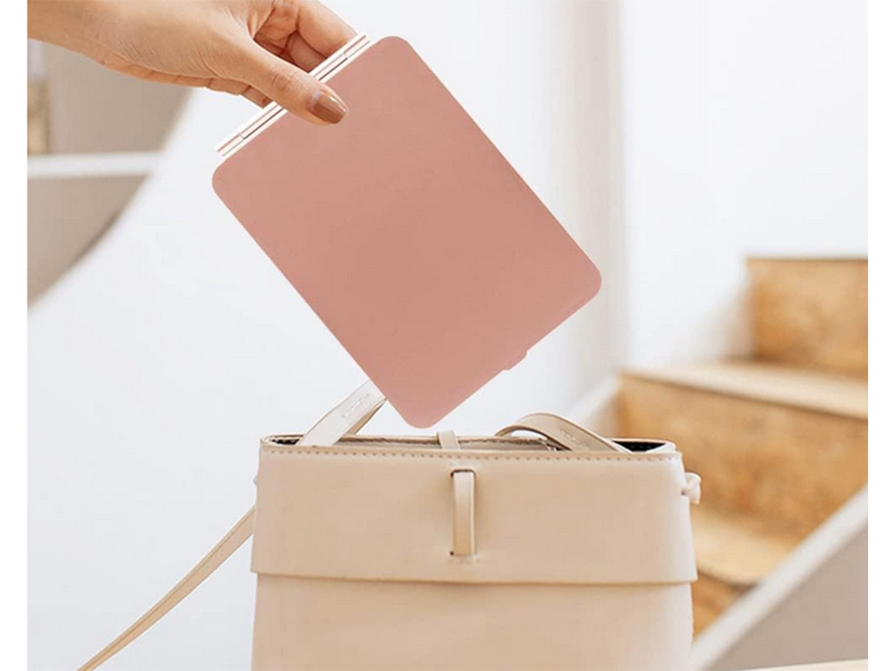 Ο καθρέφτης είναι εύχρηστος και καταλαμβάνει πολύ λίγο χώρο στην τσάντα ή τη βαλίτσα σας. Κλείνει με ένα πτερύγιο, το οποίο προστατεύει τον καθρέφτη από φθορές. Όταν ανοίγει, το κάλυμμα λειτουργεί ως βάση.