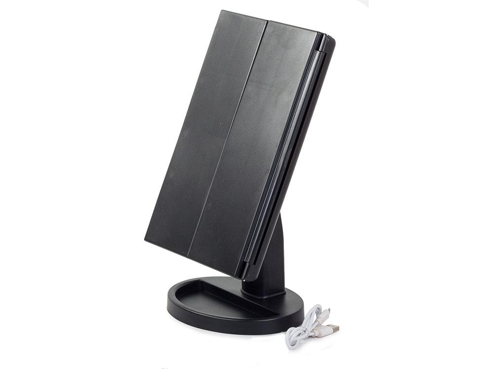 Led φωτιζόμενος πτυσσόμενος πολυκαθρέφτης μακιγιάζ με πλευρικούς μεγεθυντές 2x / 3x. 24cm x 18cm x 2.5cm. Ύψος: 28,5cm