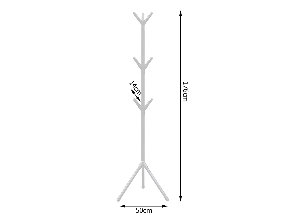 Καλόγερος ρούχων λευκός μεταλλικός 176cm με 9 βραχίονες, 3 σε κάθε επίπεδο