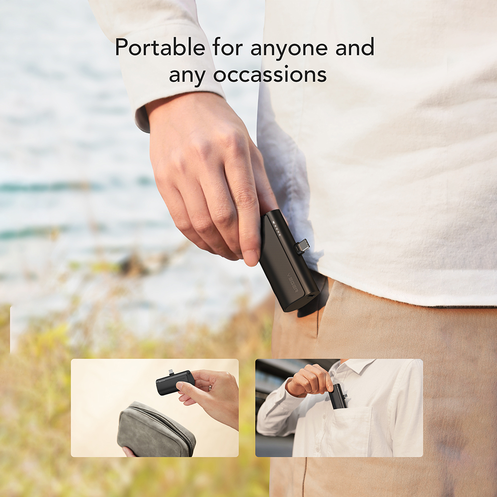 Υψηλή χωρητικότητα 5000mAh με εξαιρετικά μικρό σώμα. Σούπερ μικροσκοπικό για να χωράει στο πορτοφόλι ή την τσέπη σας χωρίς να προσθέτει βάρη, αλλά ιδανικό για να καλύψει τις καθημερινές σας απαιτήσεις φόρτισης. Φορητό για όλους και για όλες τις περιστάσεις.