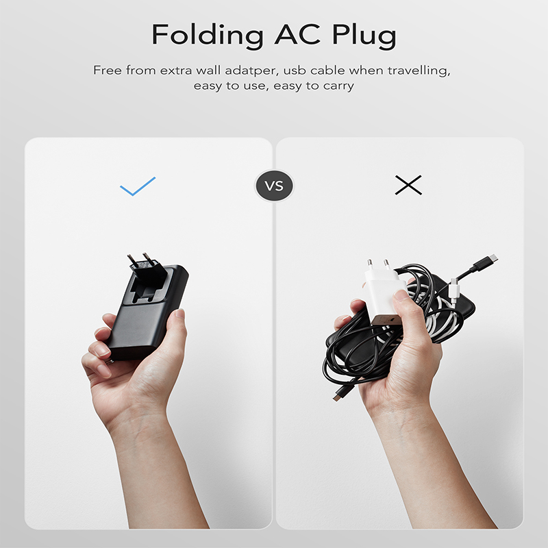Μπορεί να διαθέτει ενσωματωμένη αναδιπλούμενη πρίζα, αλλά ζυγίζει μόνο 218 γραμμάρια. Μεταφέρεται εύκολα και μπορεί να φορτιστεί παντού.