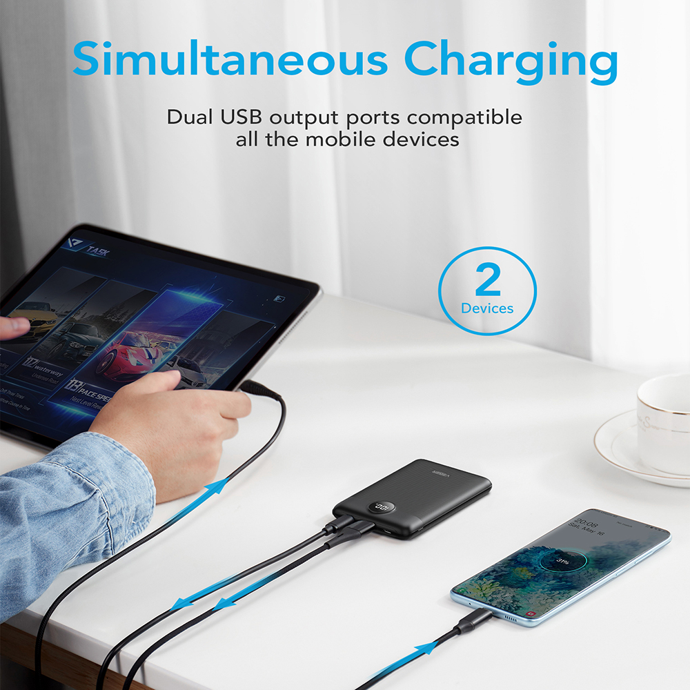 您可以同时为两个设备充电,而不必担心牺牲速度。它与大多数支持 USB 的设备高度兼容,例如智能手机、iPad 和平板电脑。