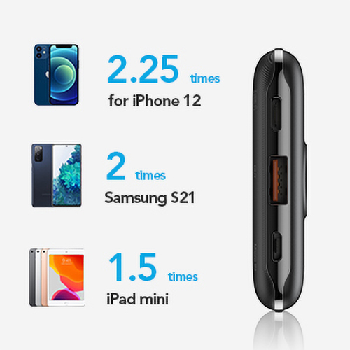 最小、最轻的 10000mAh 便携式充电器之一,可为您的设备供电多次。