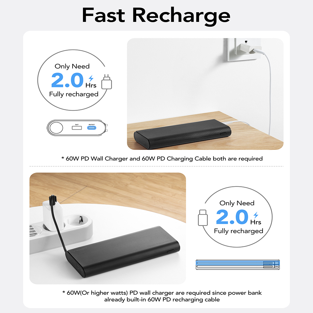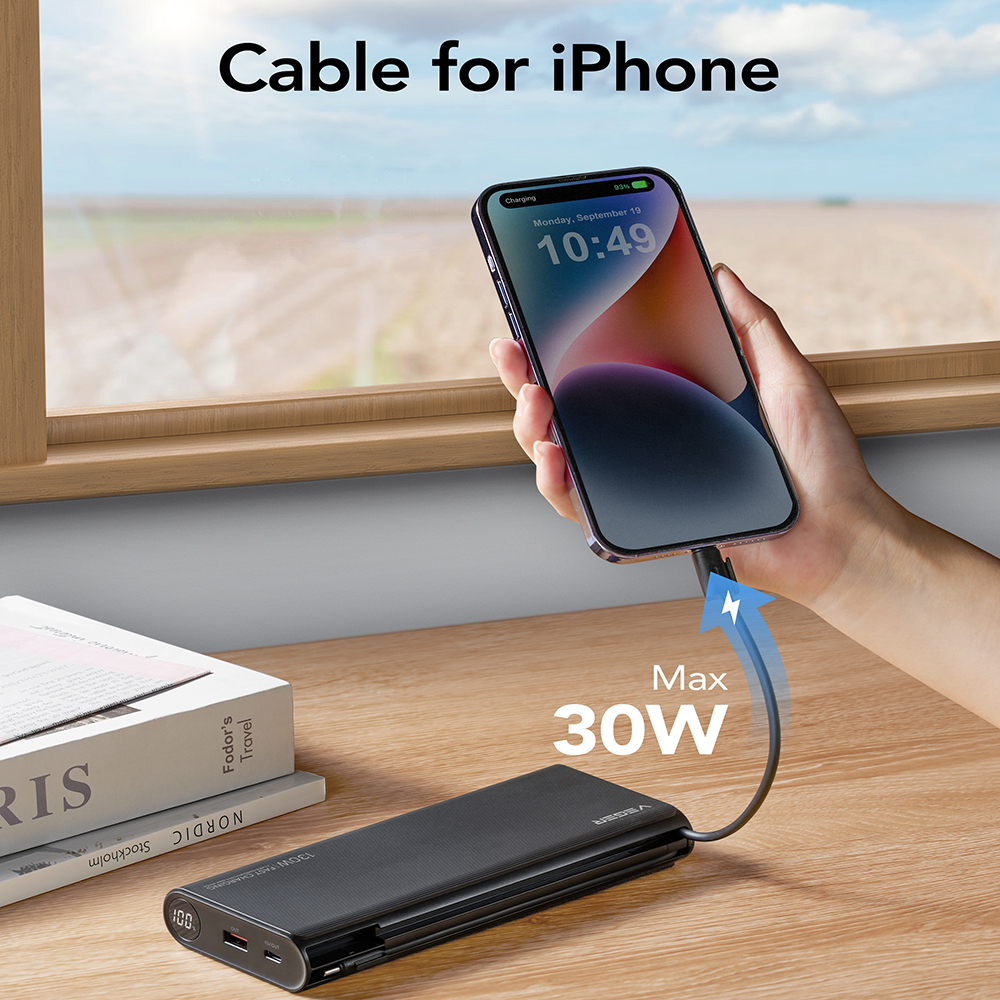 Ιδανική επιλογή για τη φόρτιση συσκευών με υψηλές ενεργειακές απαιτήσεις, όπως: smartphones τελευταίας τεχνολογίας, tablet, laptop κ.λπ. Compact και ανθεκτικός σχεδιασμός, κατάλληλος για εκδρομές, ταξίδια αλλά και off-the-grind lifestyle! Διαθέτει 2 ενσωματωμένα καλώδια (USB-C & Lightning), για την εύκολη φόρτιση των συσκευών σου.
