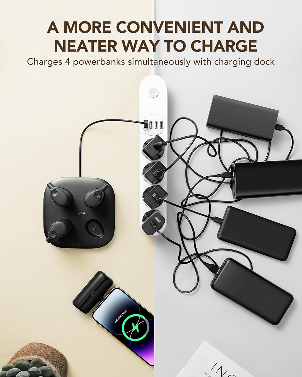 Μεταβείτε στην εποχή της αβίαστης φόρτισης με το σχεδιασμό plug and play και πείτε αντίο στο χάος των καλωδίων, απλώς συνδέστε τις συσκευές σας και απολαύστε απρόσκοπτη φόρτιση που είναι ταυτόχρονα αποτελεσματική και κομψή. Ο μαγνητικός σταθμός φόρτισης μπορεί να φορτίσει έως και 4 PowerBank ταυτόχρονα!